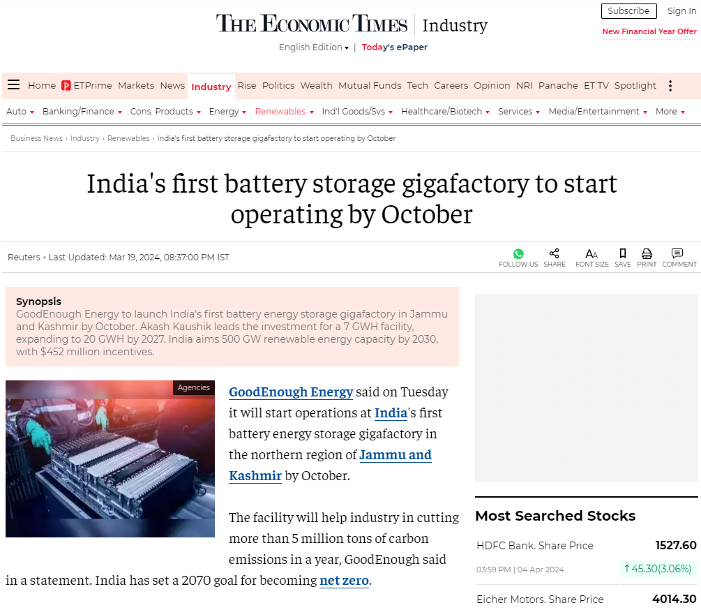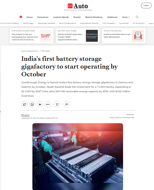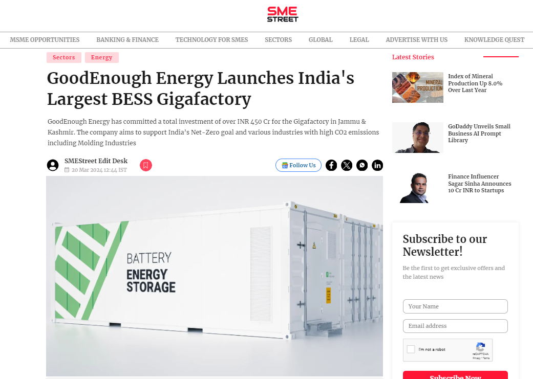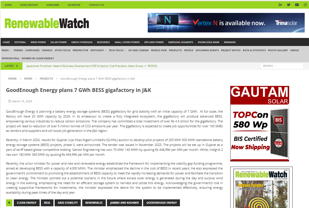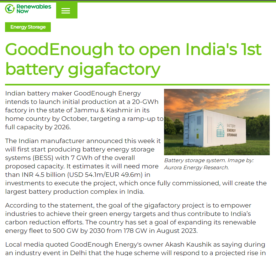 Explore GoodEnough Energy’s groundbreaking initiatives and industry leadership in the field of battery energy storage systems have been featured globally.
